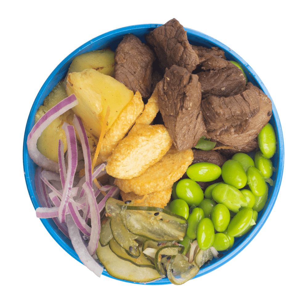 Edamame, Cebola Roxa, Chips Batata Doce, Molho Tradicional.