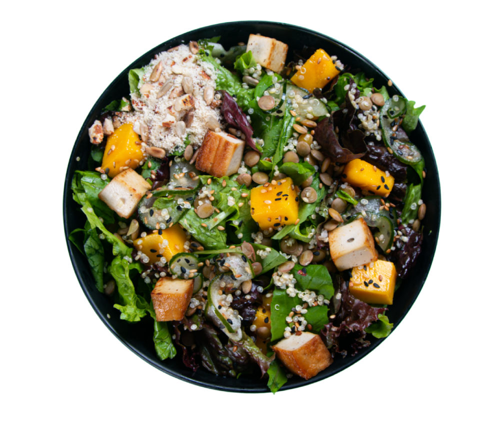 Tomate cereja, Mix Folhas, Parmesão Ralado, Molho de Ervas.