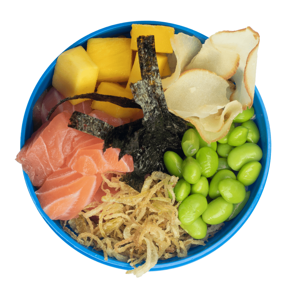 Arroz Japonês, Salmão, Manga, Nori picado, Poró Crispy,